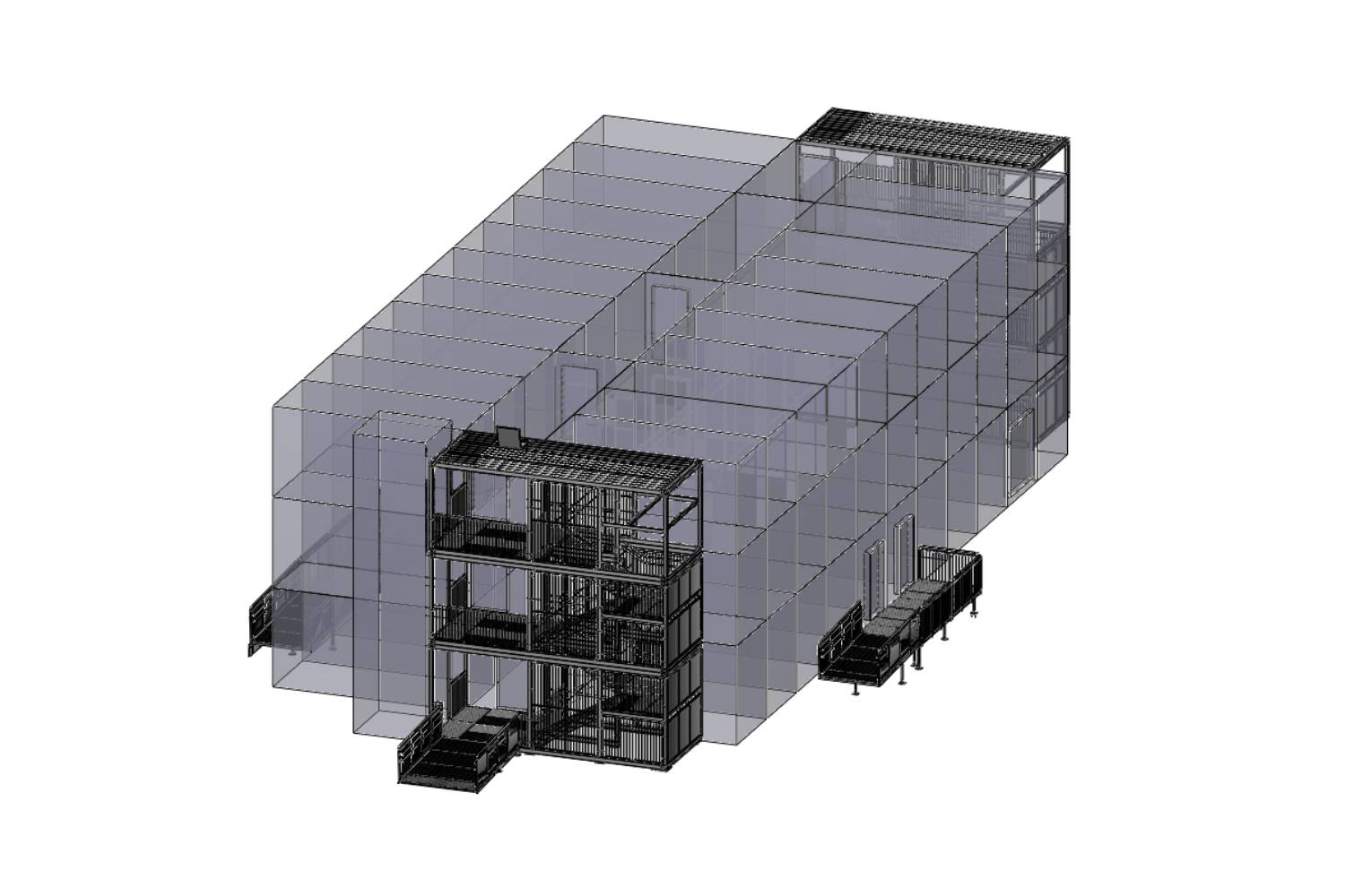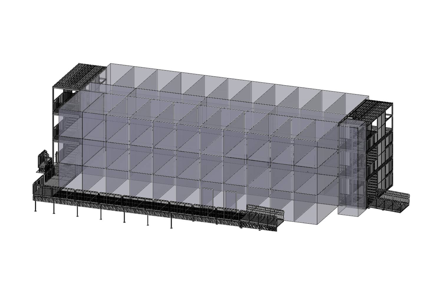 1-geschossige Containeranlage mit Podestgang, Treppen, Rampen und Überdachung, inkl. Planung und Statik