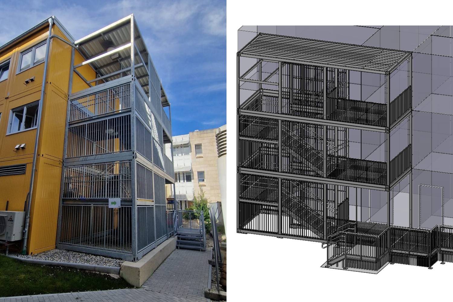 Zwei 3-geschossige offene Treppenhäuser in Modulbauweise, Podest- und Rampenanlage, inkl. Planung und Statik
