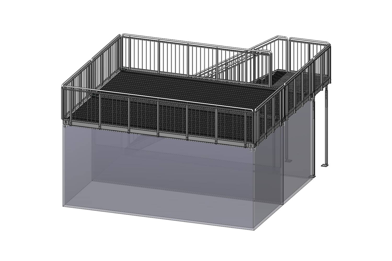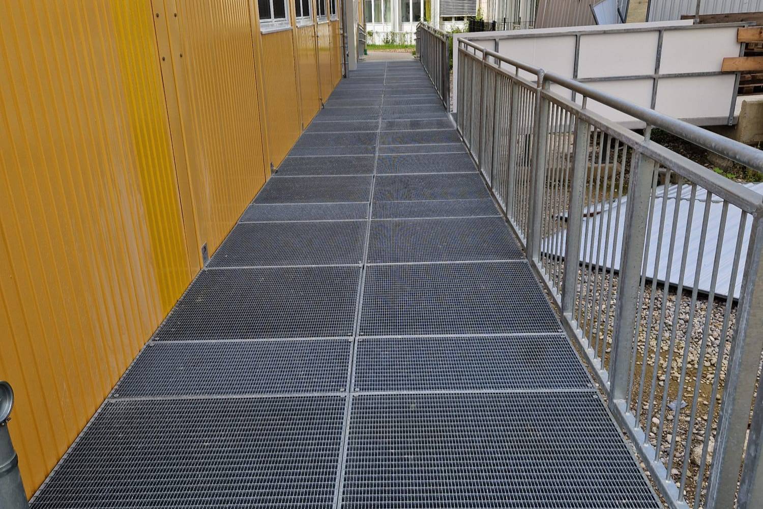 Nachträglich aufgestockte Anlage, wo wir bereits die Treppen, Podeste, Rampe im EG liefern durften