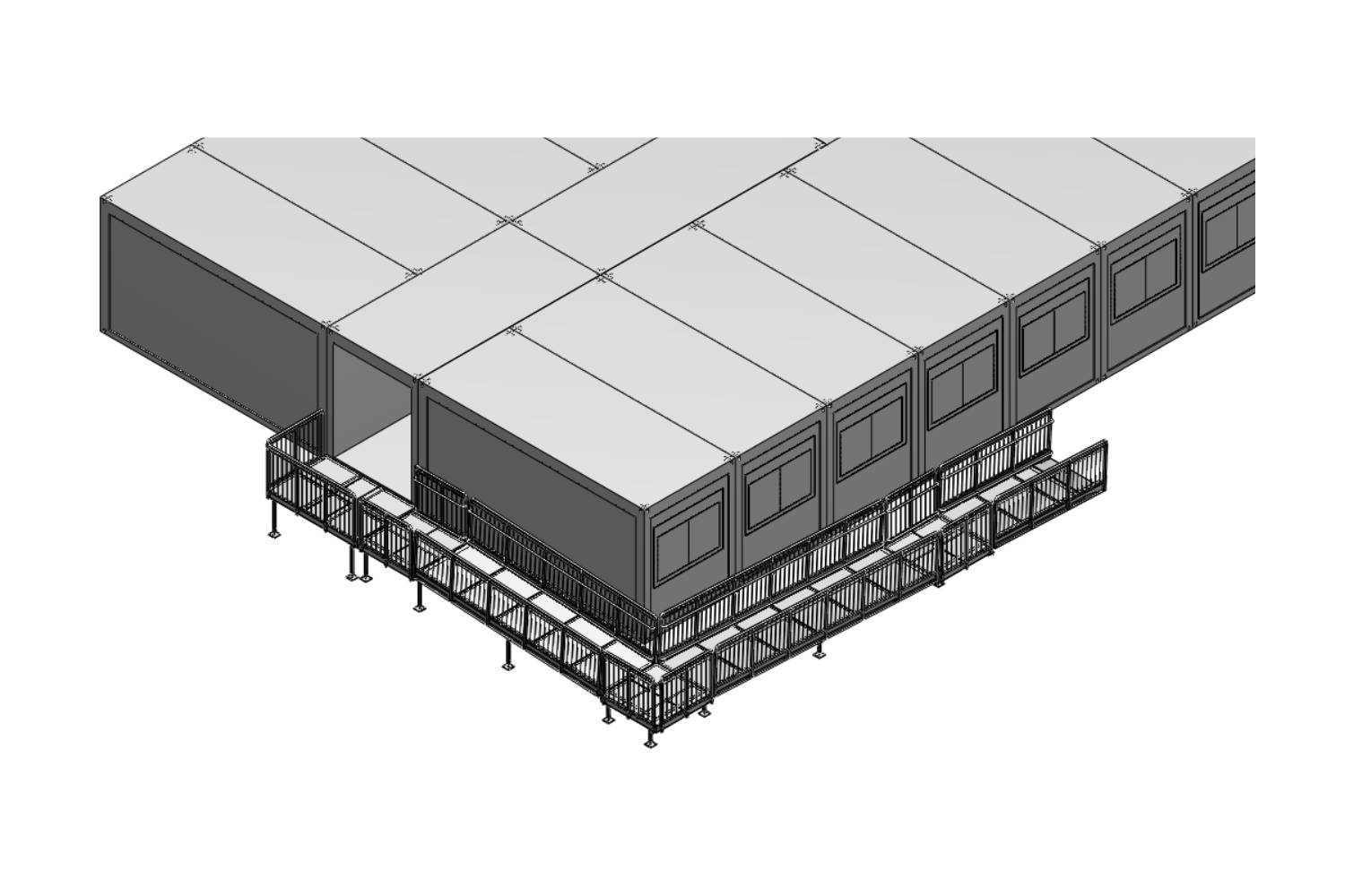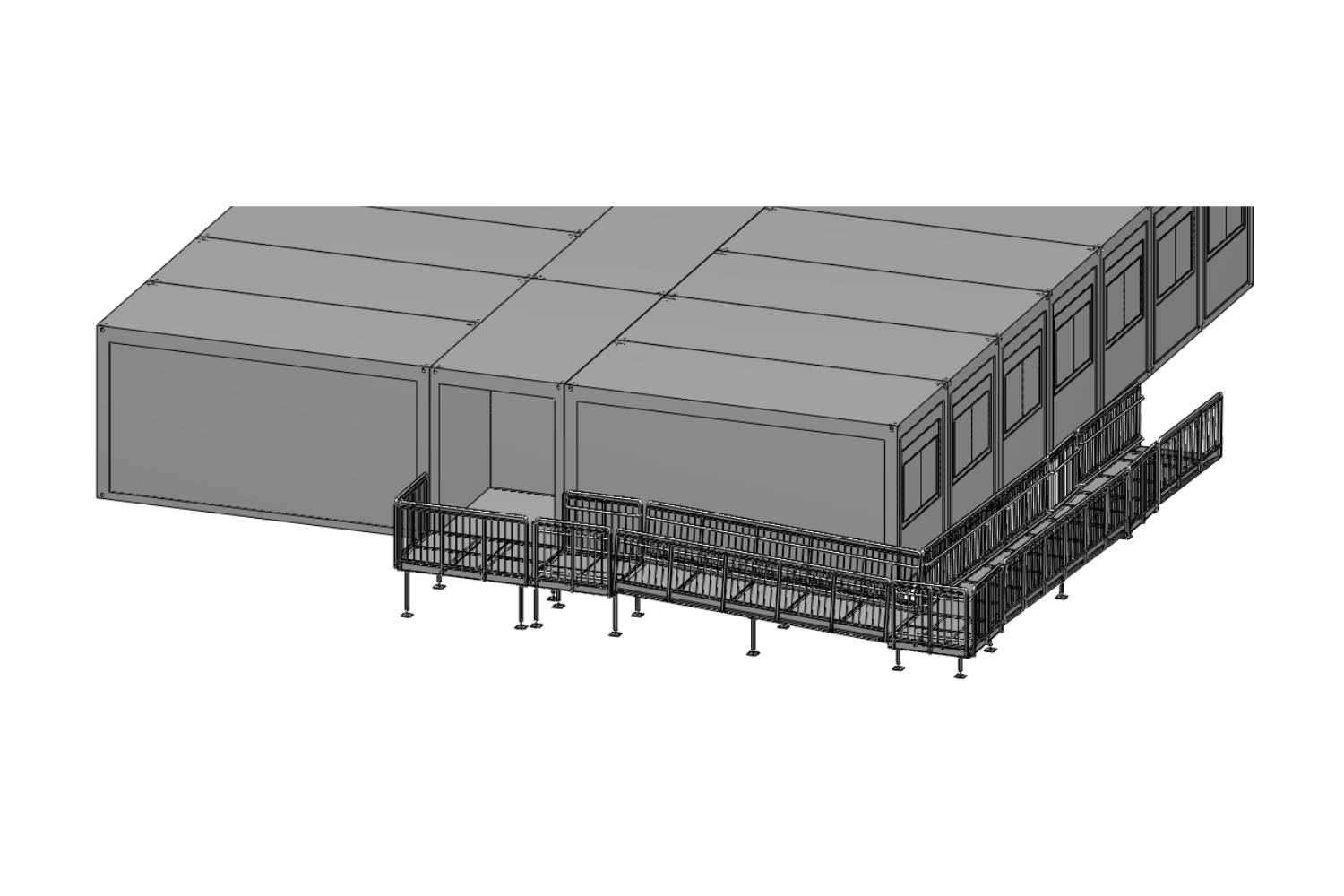 1-geschossige Containeranlage mit Podestgang, Treppen, Rampen und Überdachung, inkl. Planung und Statik