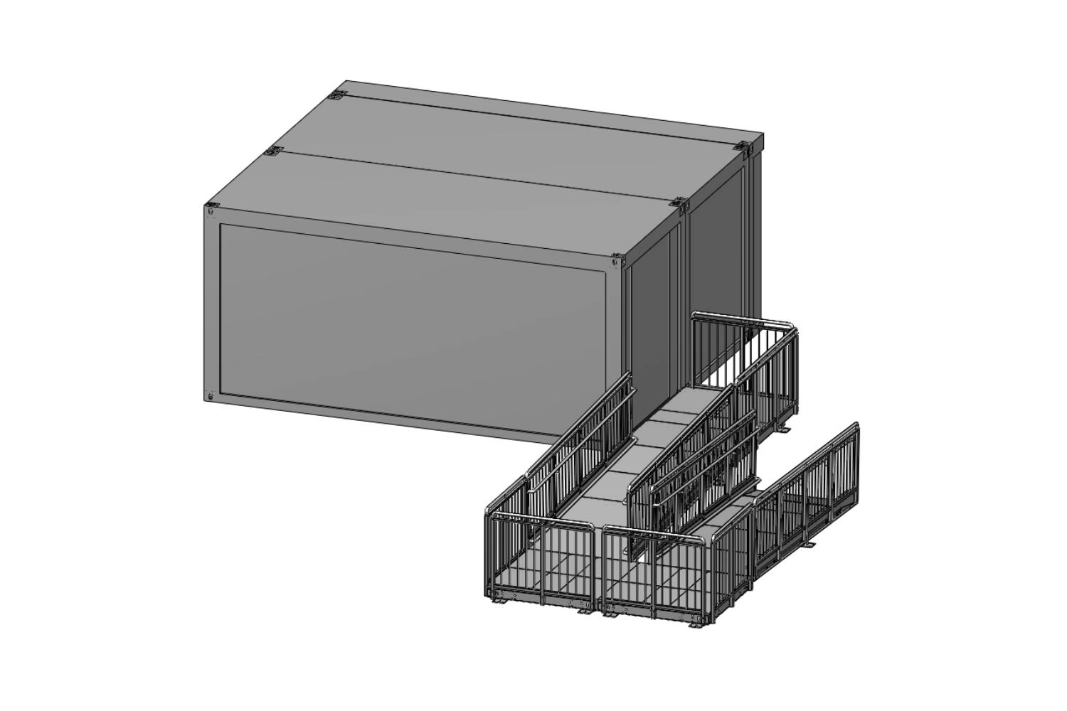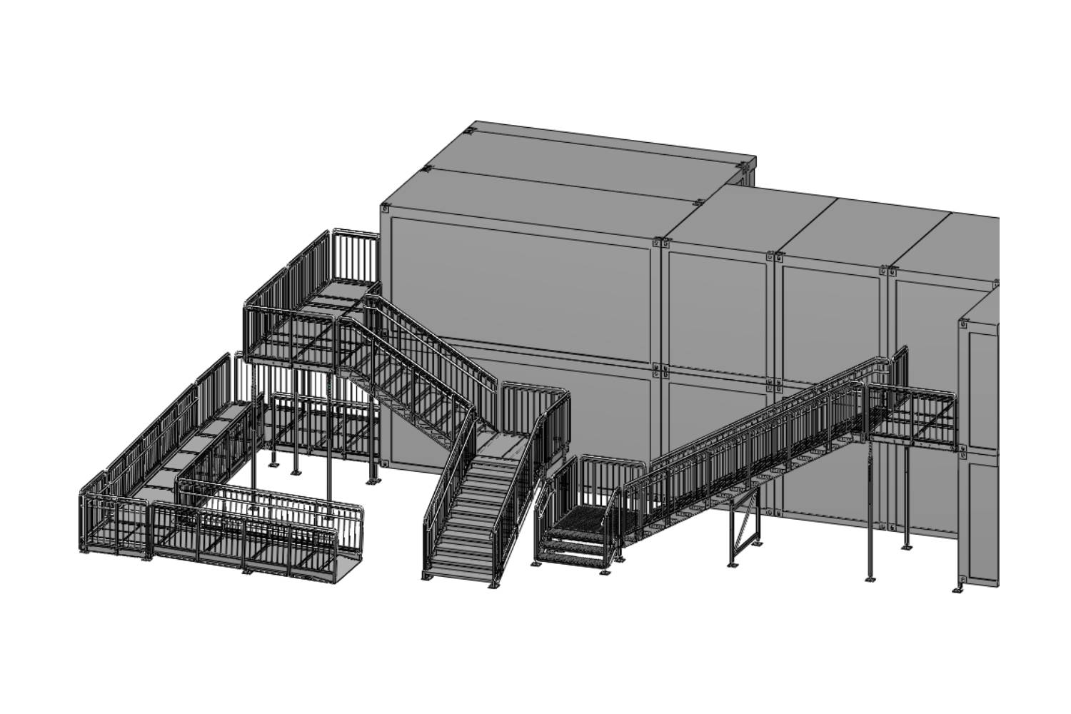 2-geschossige Containeranlage, Zugang ins EG und 1. OG über eine Treppen- und Podest- sowie Rampenanlage, inkl. Planung und Statik