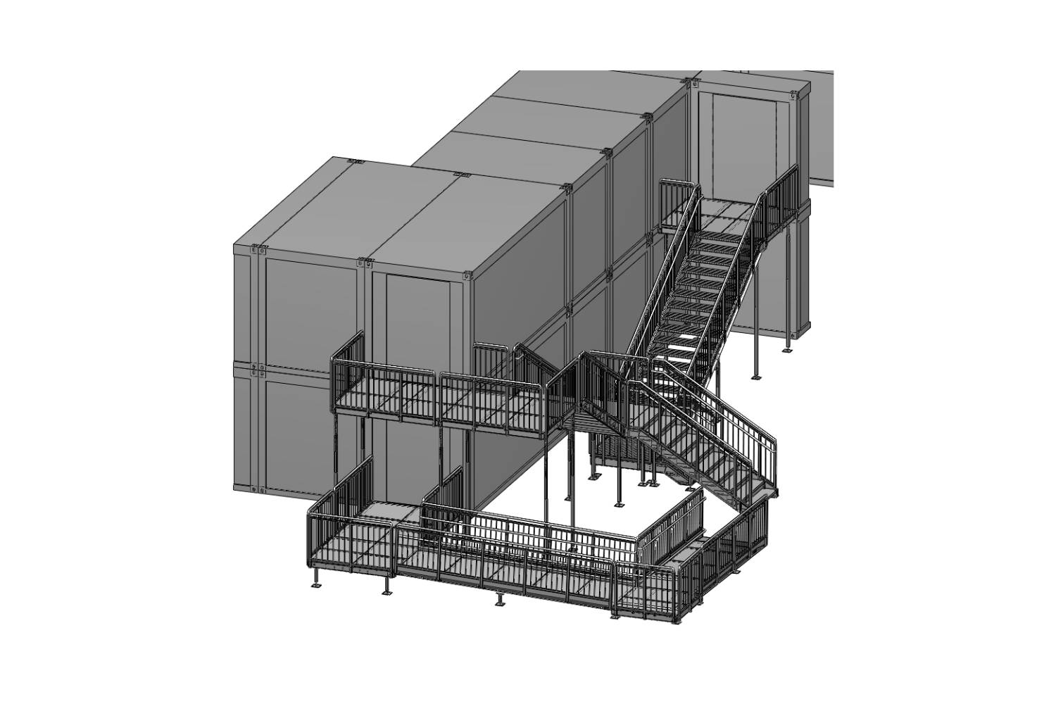 2-geschossige Containeranlage, Zugang ins EG und 1. OG mit einer Treppen-Podestanlage, inkl. Planung und Statik