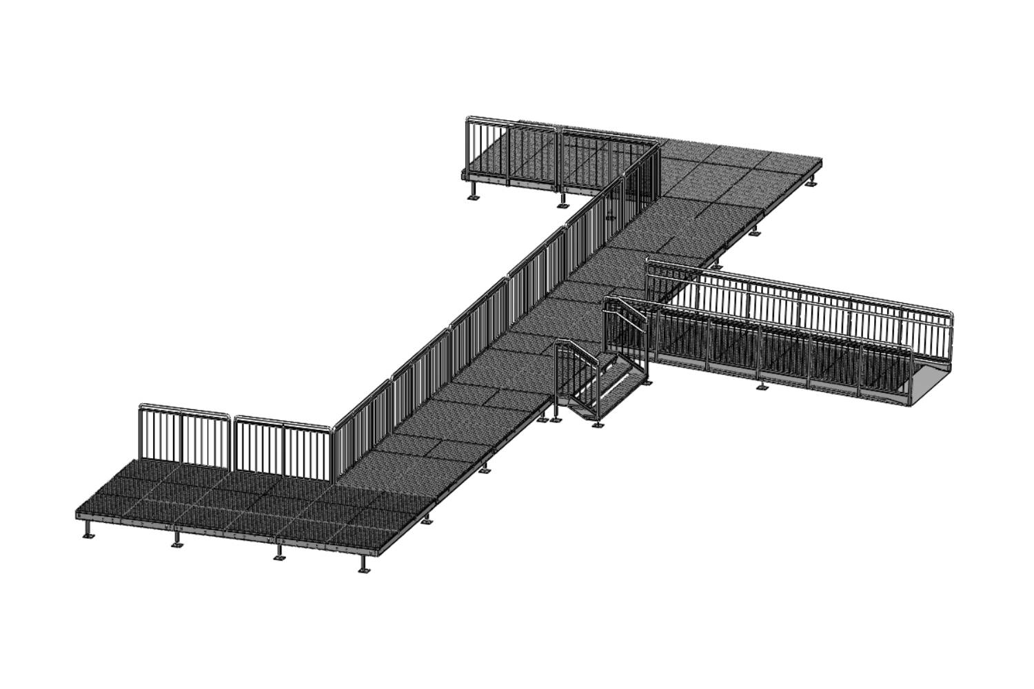 Zwei 3-geschossige offene Treppenhäuser in Modulbauweise, Podest- und Rampenanlage, inkl. Planung und Statik